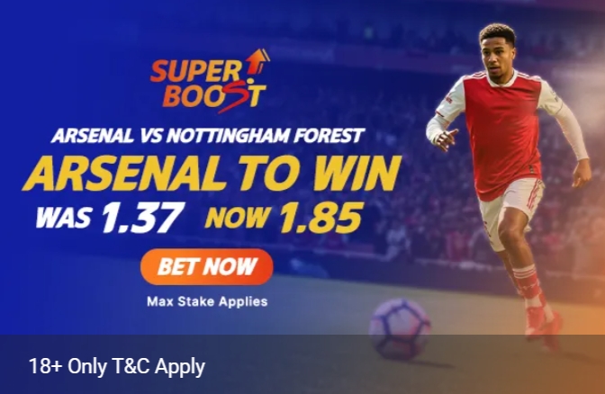SuperSportBet is offering a pre-match odds boost for the Arsenal to beat Nottingham Forest in the English Premier League on Saturday.