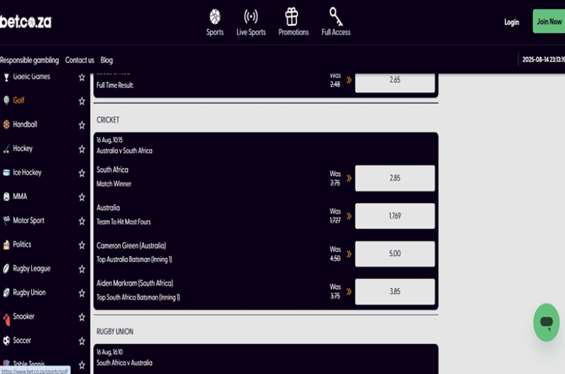 Bet.co.za Boosted Cricket Odds for Australia v South Africa