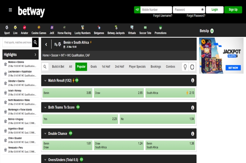 Players with a Betway South Africa account can head to the sportsbook section and find the boosted price for Bafana Bafana to win against Benin.
