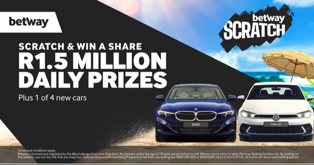 Win a share of R1.5 million every day as part of the Betway Scratch giveaway with a total of R100 million up for grabs through November and December 2025.
