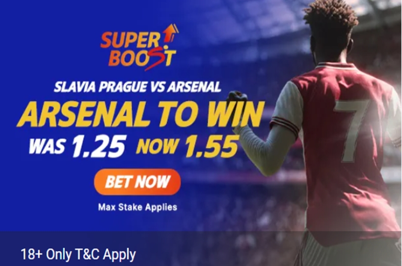 SuperSportBet has boosted odds for Arsenal to beat Slavia Prague in Tuesday’s Champions League match.