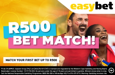 Those promotions include a 100% match on your first bet of up to R500 - just use the Easybet promo code NEWBONUS.