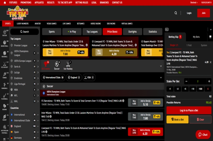 TicTacBets players can sign in and access further pre-match price boosts for this week’s European and domestic soccer games.