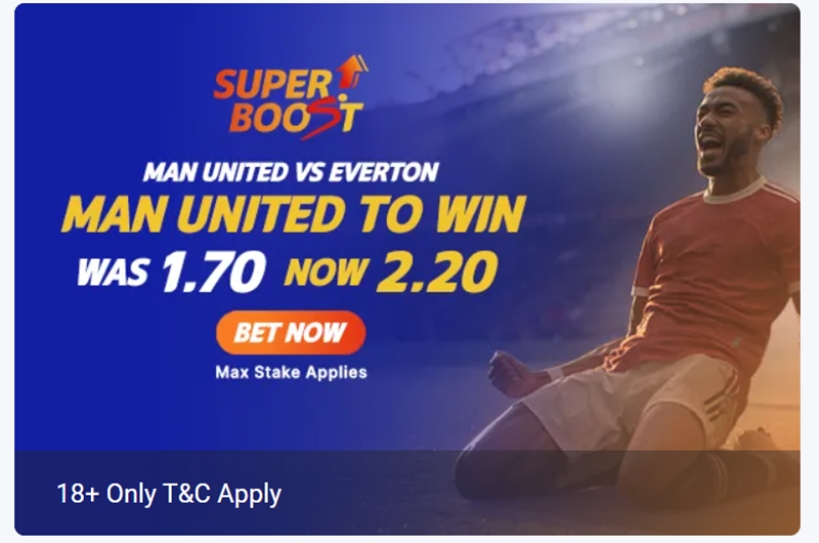 - SuperSportBet has boosted odds for Man United to beat Everton.