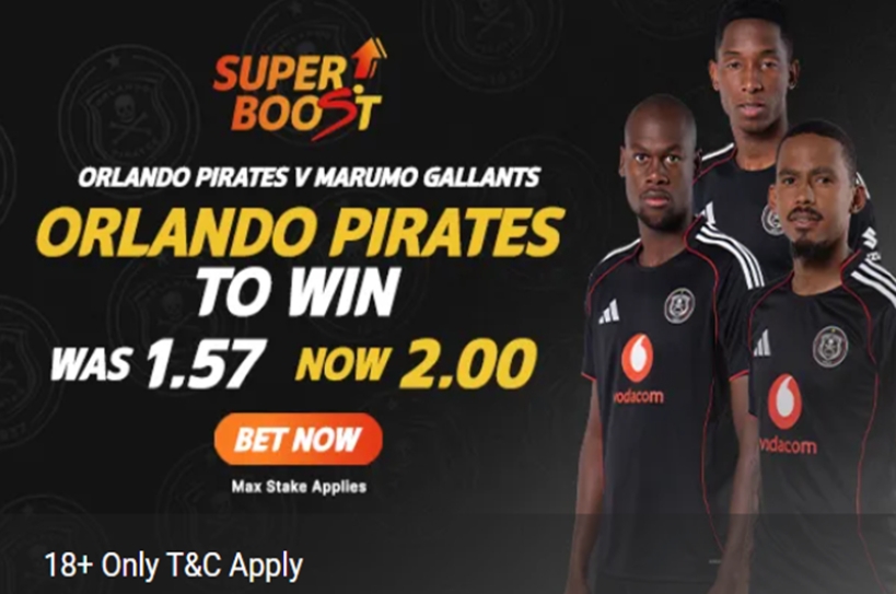 - SuperSportBet has boosted odds for Orlando Pirates to win against Marumo Gallants.