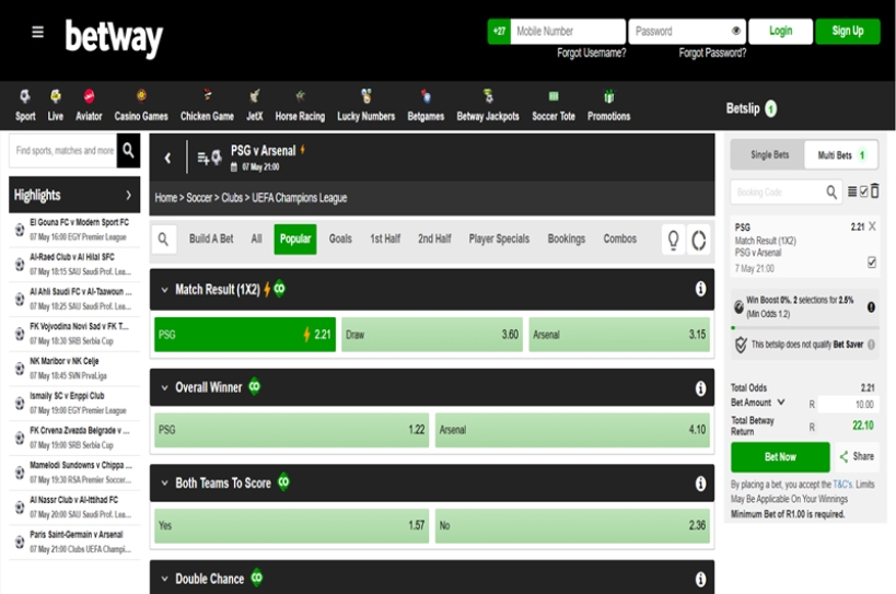 This Champions League semi-final price boost is available to all Betway South Africa players with a valid account.