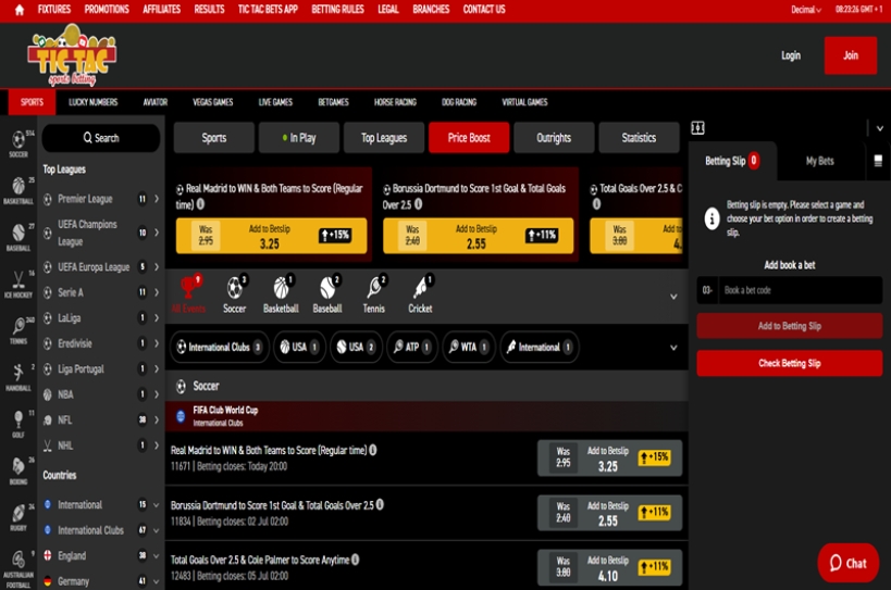 TicTacBets players can get enhanced odds for the Club World Cup game between Real Madrid and Juventus.