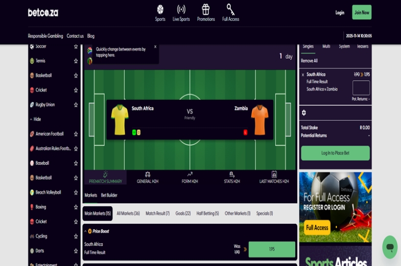 - Click the boosted 1.95 odds for South Africa to beat Zambia.