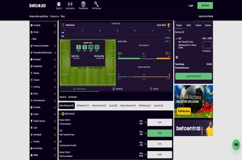 - Bet.co.za are offering a price boost for the Kaizer Chiefs to win against Stellenbosch.