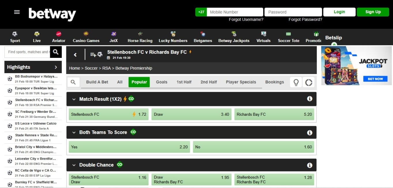 Players can sign into Betway South Africa, head to the soccer page and find the Stellenbosch vs Richards Bay odds boost in the 1x2 market.