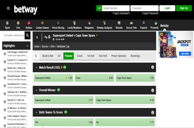 Players can head to the official Betway South Africa site, sign in and find the Supersport United vs Cape Town Spurs odds boost.