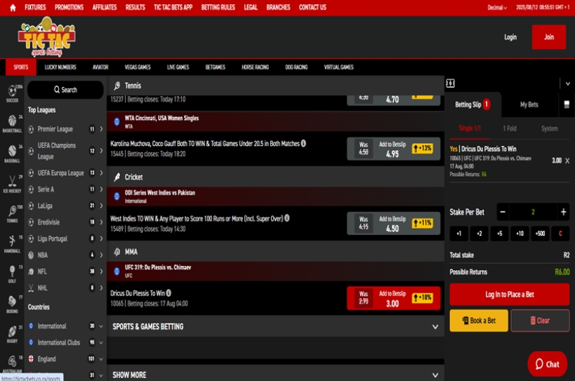 TicTacBets players can get boosted UFC 319 odds for Dricus du Plessis to win the headline event in Las Vegas against Khamzat Chimaev.