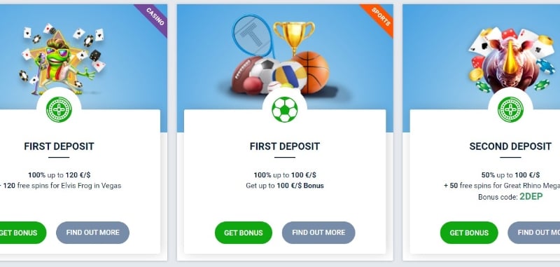20Bet offers a very impressive variety of sign up bonus to their customers. Their sports offer is a 100% first deposit match up to $/€100. New casino players can get 100% up to $/€120 plus 120 free spins. They are also able to claim a 50% second deposit bonus up to $/€100 plus 50 free spins.