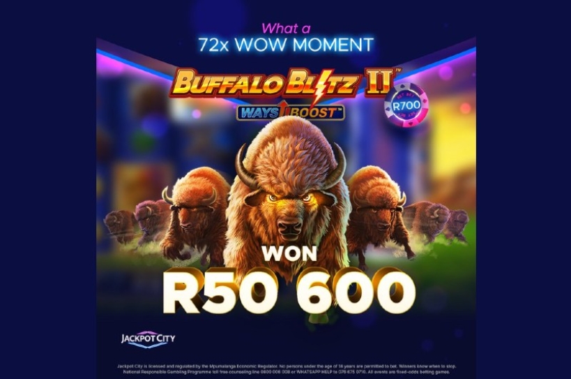 - Jackpot City player wins R50,600 with R700 bet on Buffalo Blitz II.