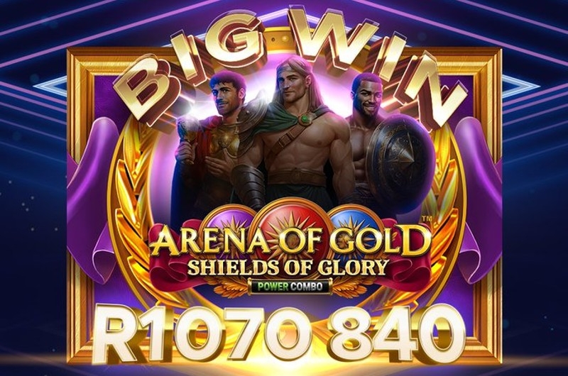 The win came during a gaming session on All41 Studios’ “Arena of Gold: Shields of Glory (Power Combo)” slot, where the stars aligned and the multipliers stacked to create a payout worth R1,070,840.