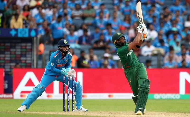Mahmudullah hits over the top against India.