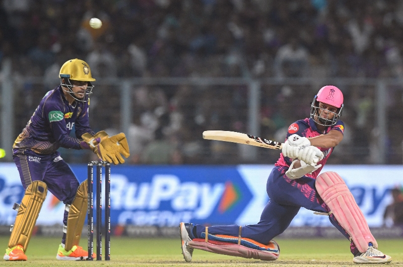 Yashasvi Jaiswal sweeps against the Knight Riders.