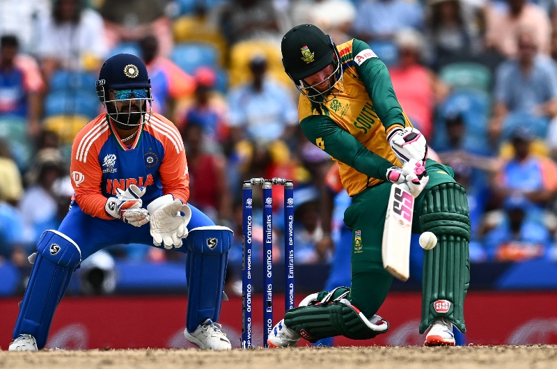 Heinrich Klaasen hits a six in the T20 World Cup final.