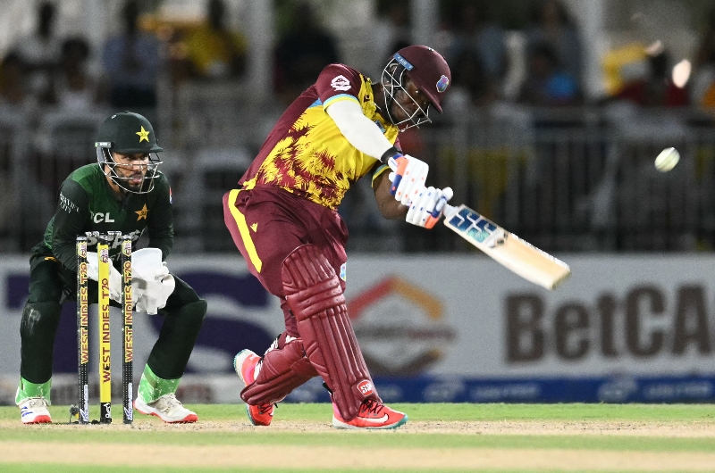 Sherfane Rutherford hits out against New Zealand (Getty Images).