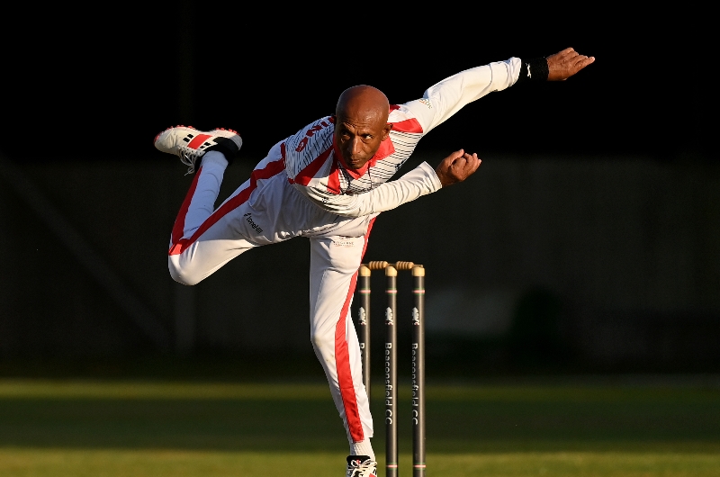Marcus Young of England bowls during the Over-70s Cricket World Cup match between England Seniors and Australia (Getty Images)