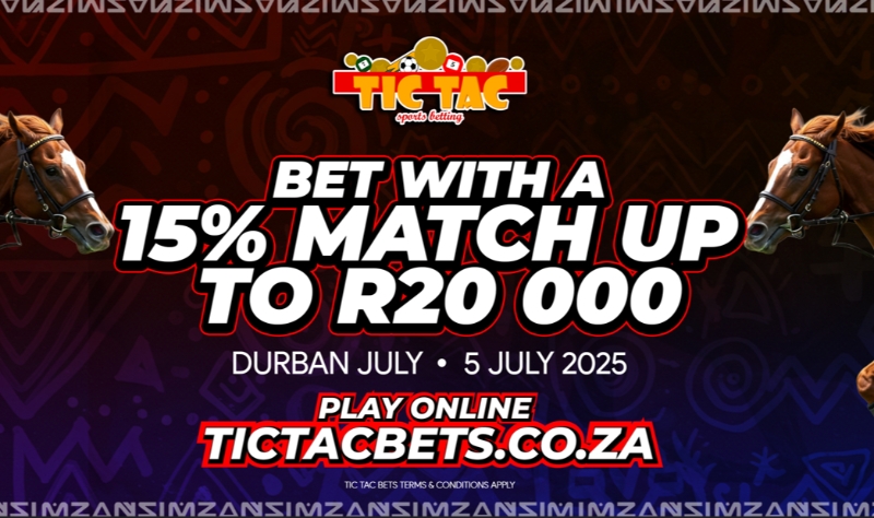 Durban July Bonus - Get a 15% bonus on all deposits up to R20k with TicTacBets