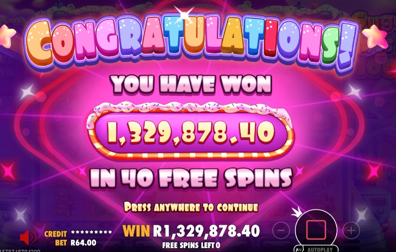 - EasyBet player turns 40 free spins into R1.3 million on Sugar Rush 1000.