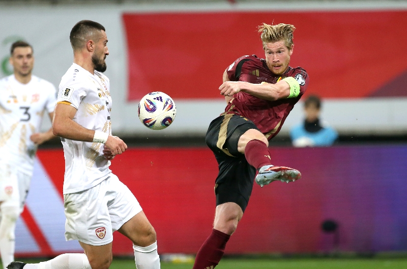 Gjoko Zajkov (Nth Macedonia) & Kevin de Bruyne (Belgium).