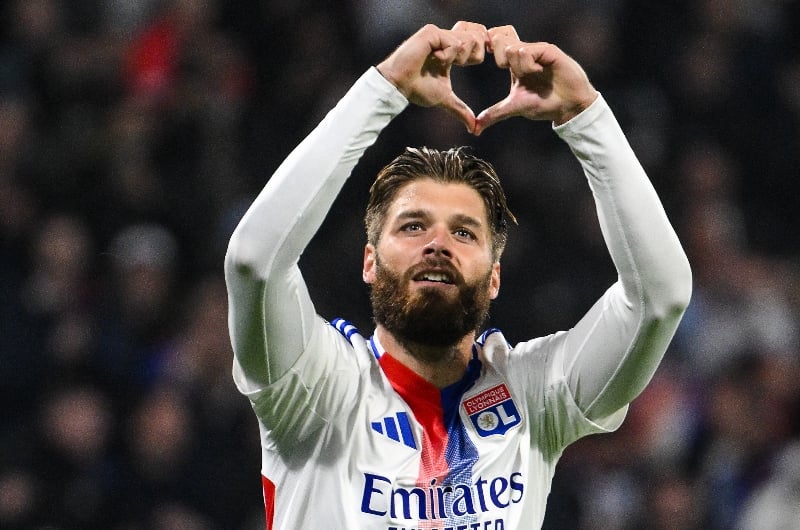 Caleta-Car celebrates scoring his team's first goal during the French L1 football match (Getty Images)