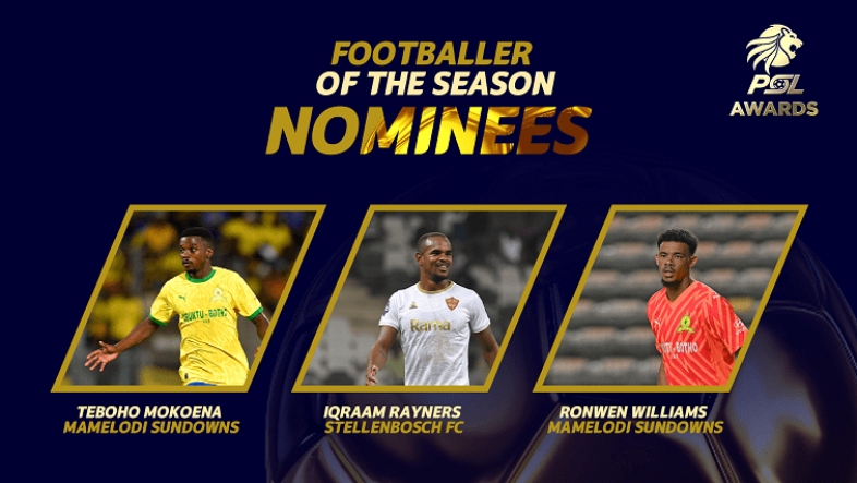 Teboho Mokoena and Ronwen Williams are vying for the main award with Iqraam Rayners of Stellenbosch FC. Williams is also shortlisted for the Players’ Player of the Season gong.