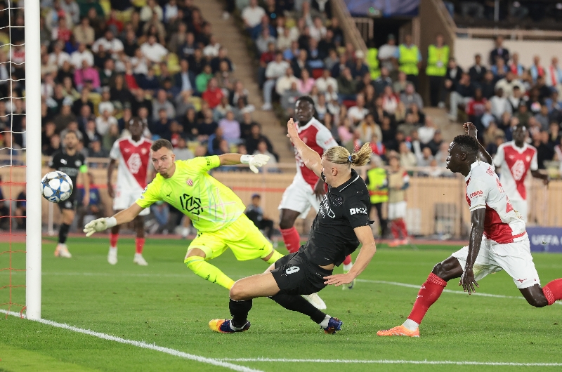 Erling Haaland attacks the Monaco goal.