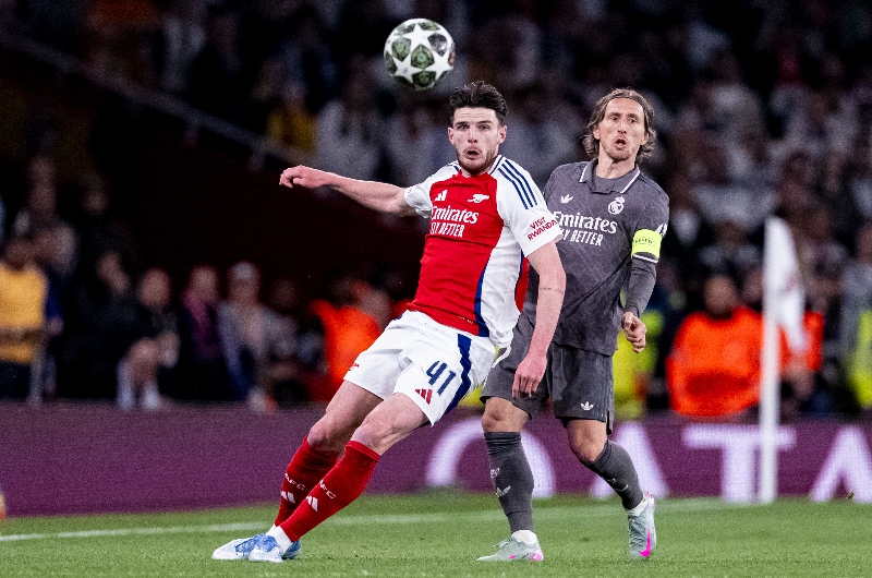 The Gunners earned a third straight draw on the road after a 1-1 stalemate at Everton. Declan Rice scored two direct free-kicks in a commanding 3-0 victory over Real Madrid in the Champions League quarter-final first leg at the Emirates Stadium.